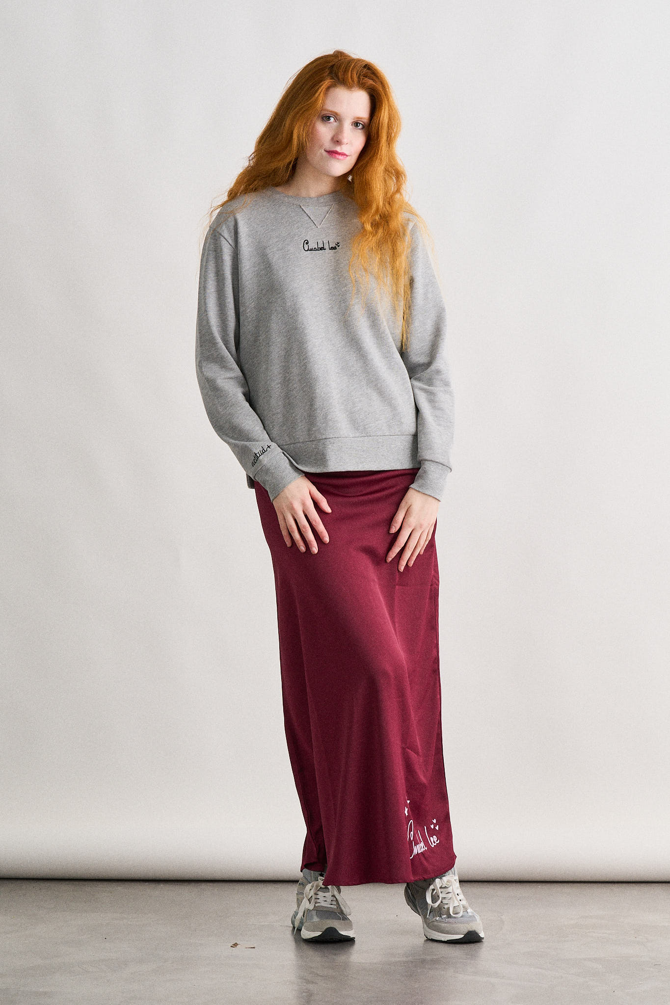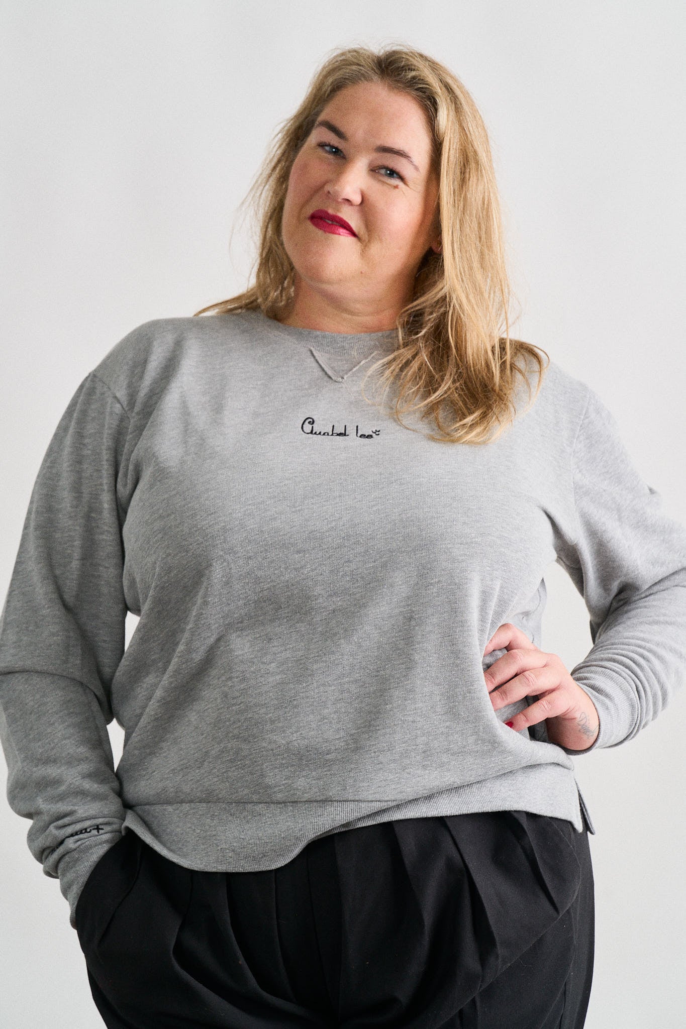 -Detalle de logo bordado en pecho y texto bordado en manga.
