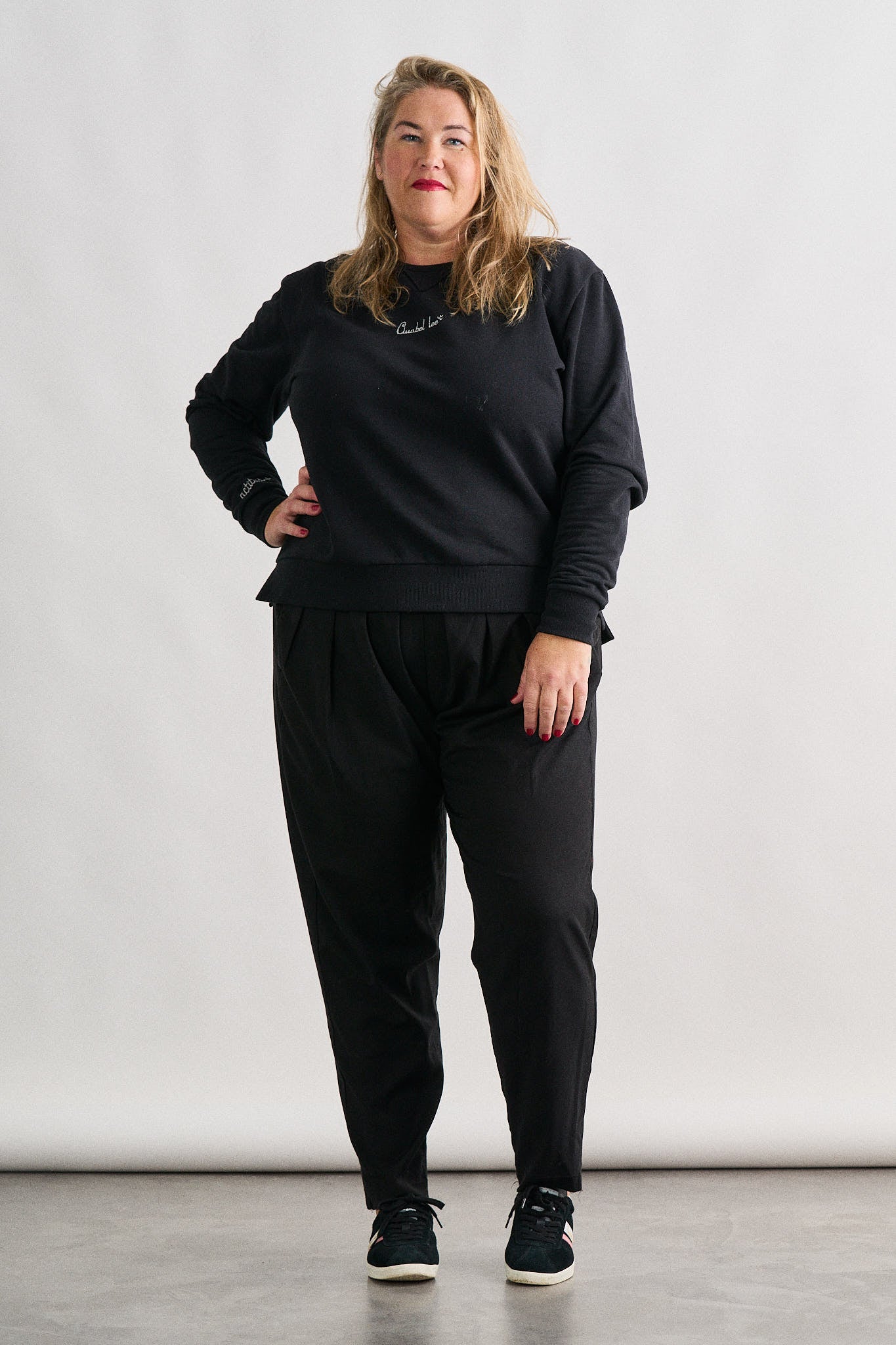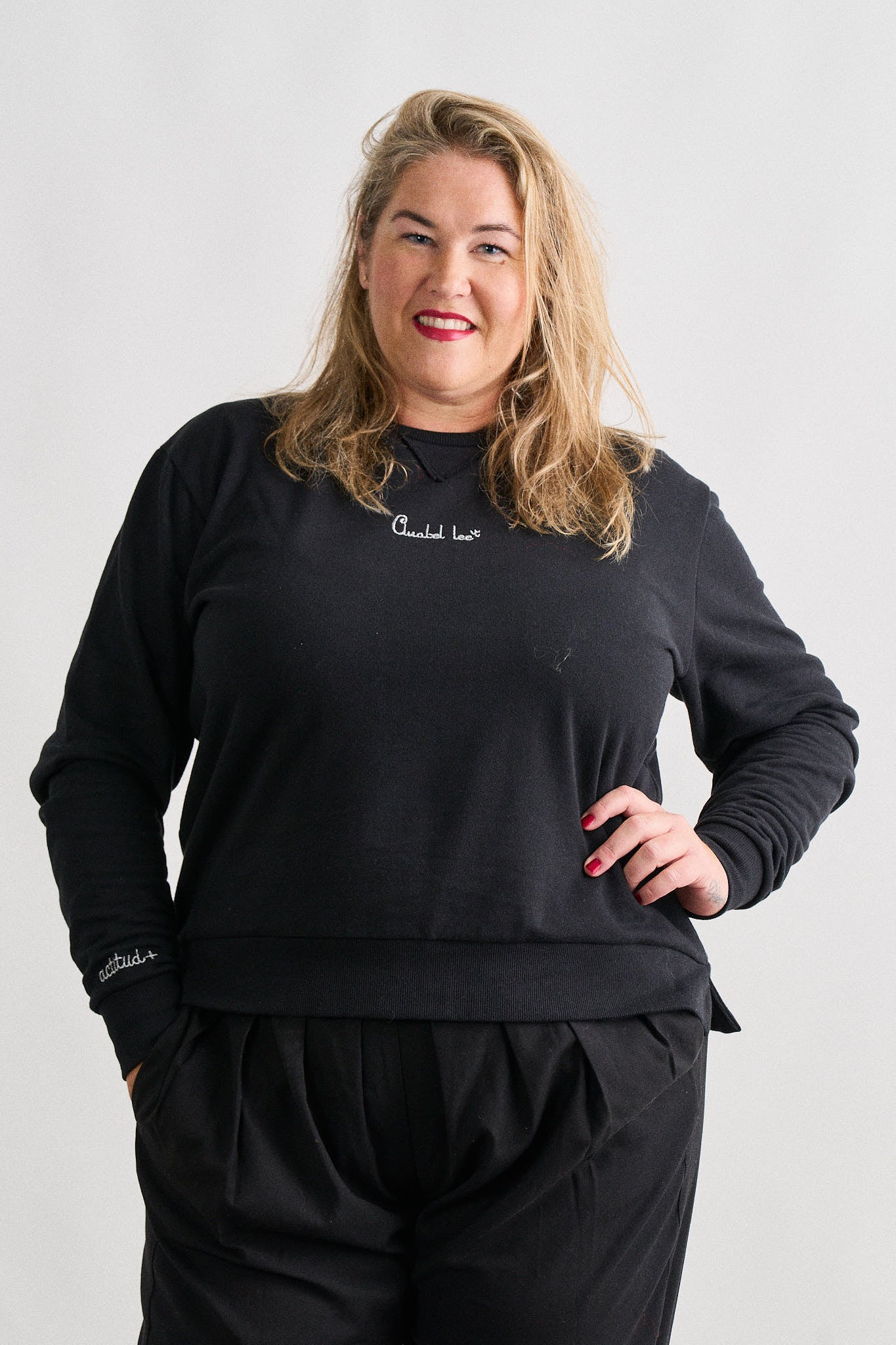 Romina mide 1,80cm y lleva la talla S. Tatiana mide 1,75cm y lleva la talla XXL.