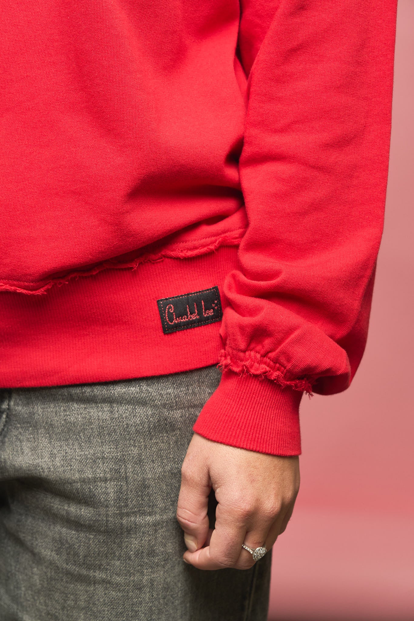 -Manga larga con puño, cuello redondo, y acabado de costuras visibles en exterior.