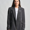 -Blazer de línea recta, doble botonadura y cuello solapa.