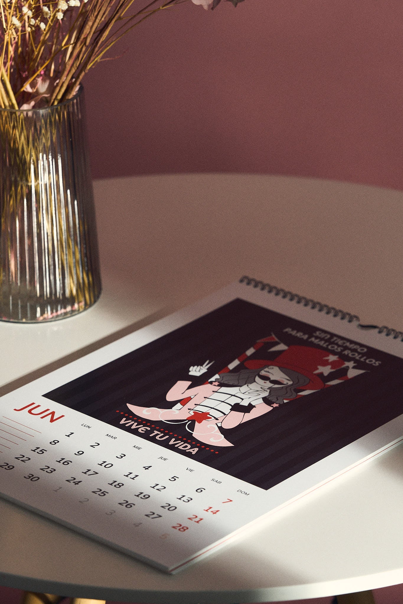 Calendario anual con ilustraciones en la temática de CIRCO y mensajes positivos.