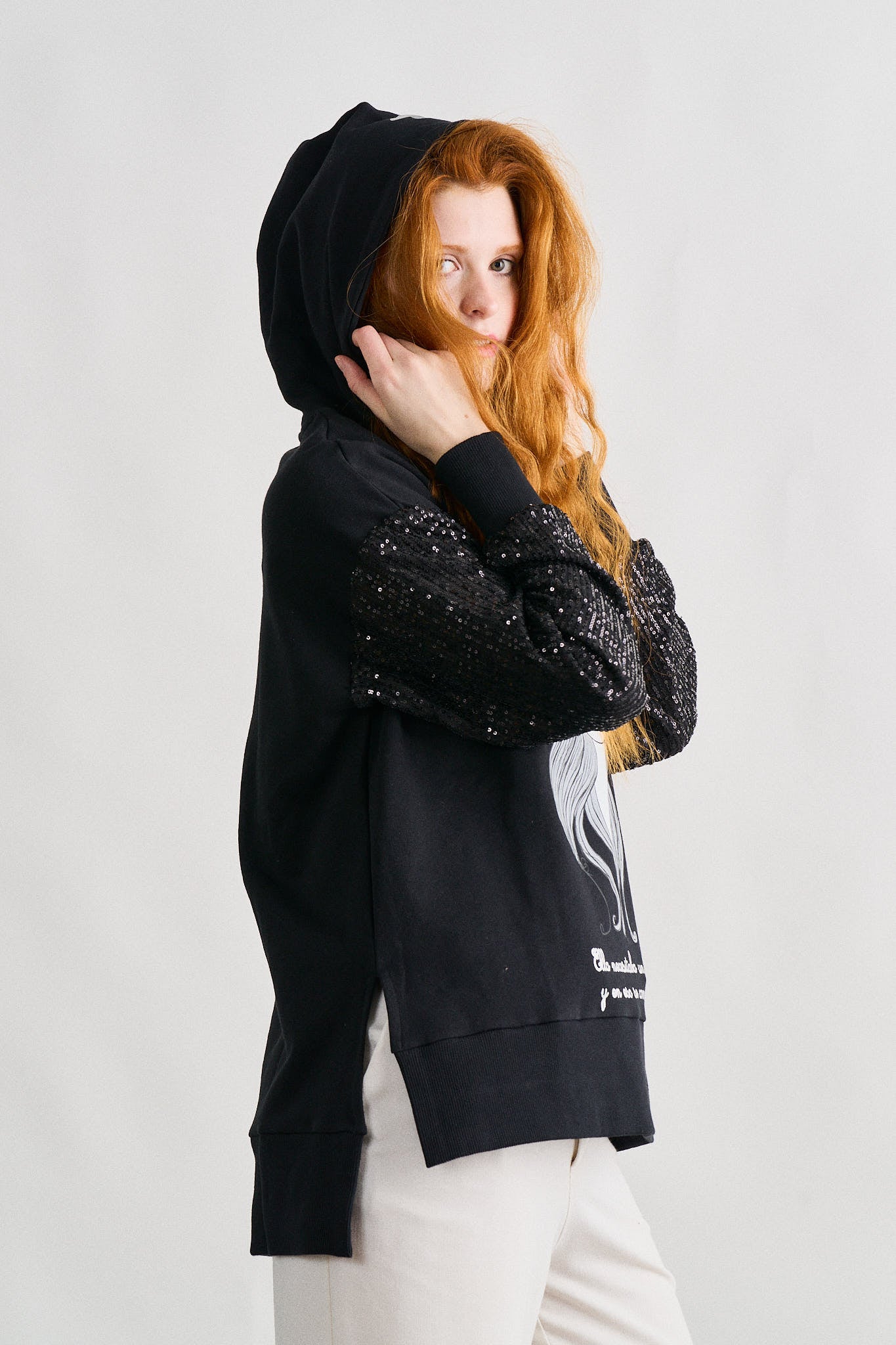 -Print con foil sobre la capucha.