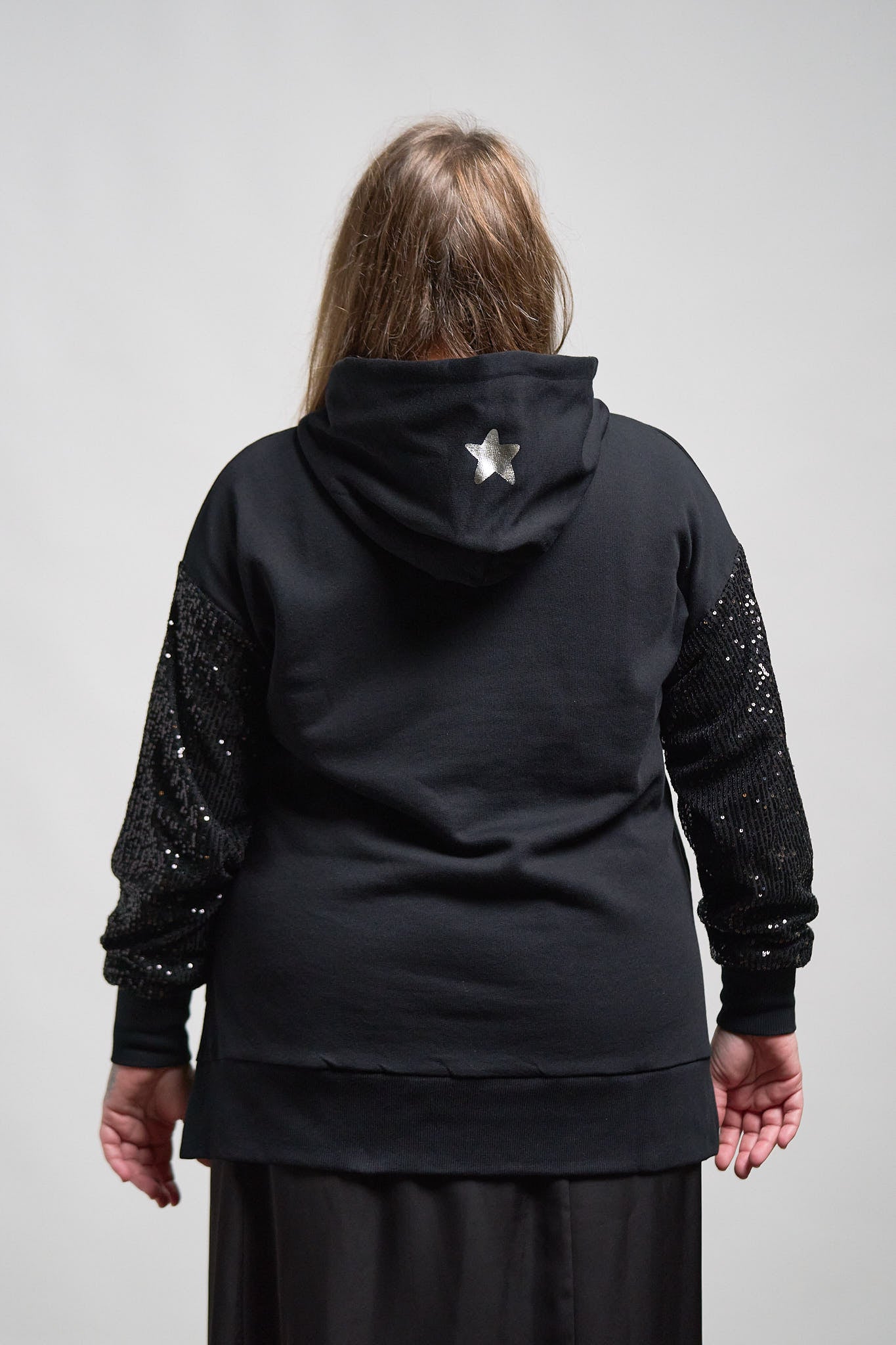 -Manga larga con lentejuelas forradas en el interior.