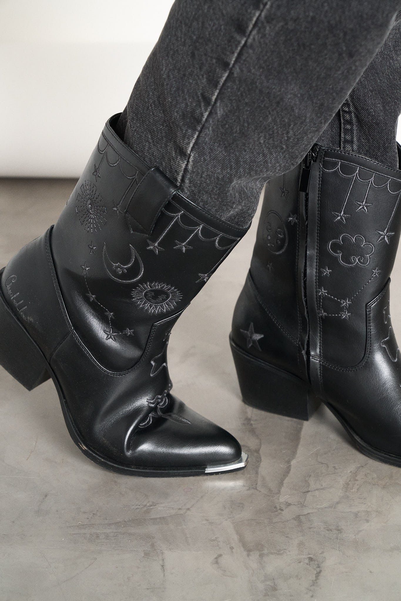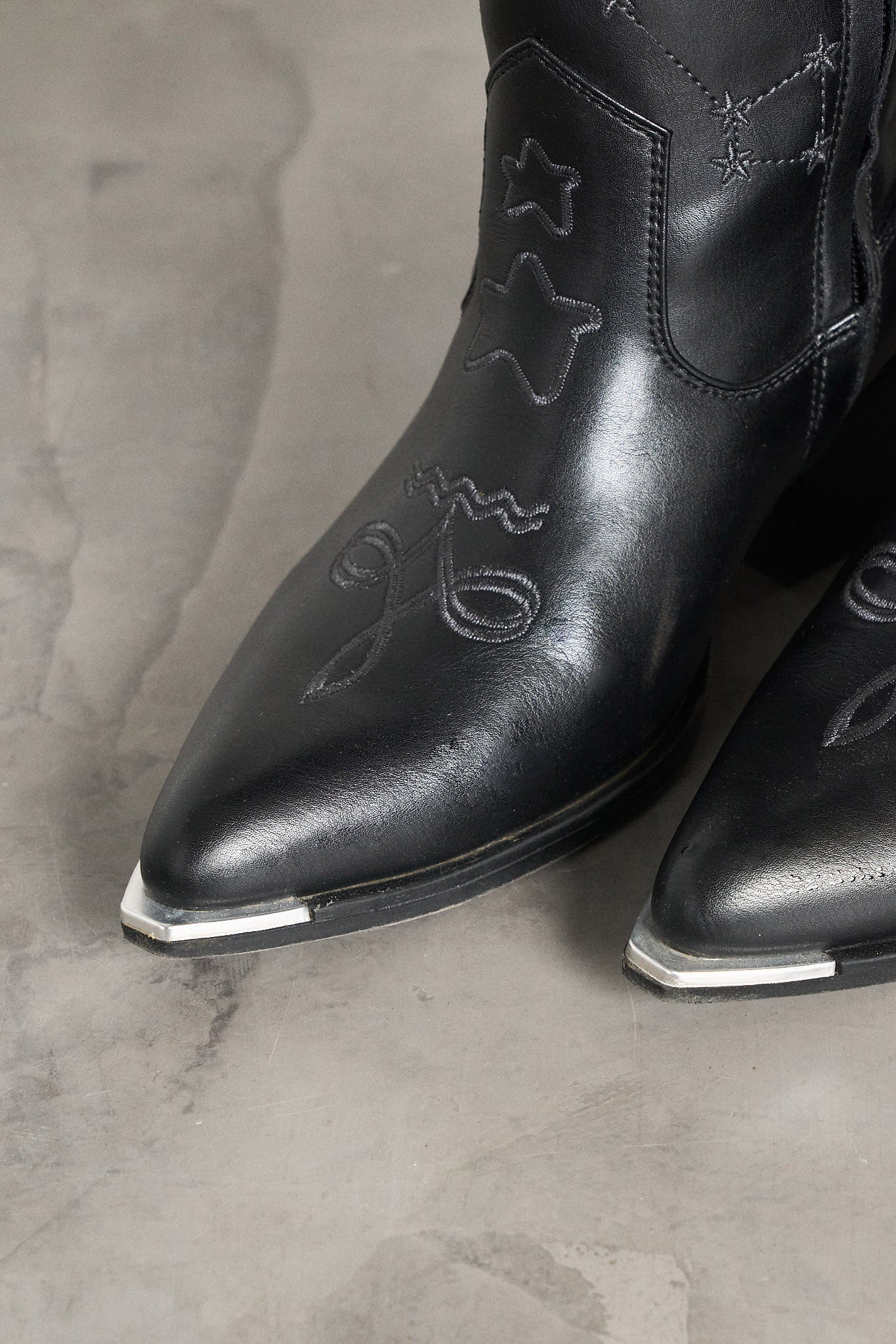 -Acabado en punta con detalle de aplique plateada en puntera.