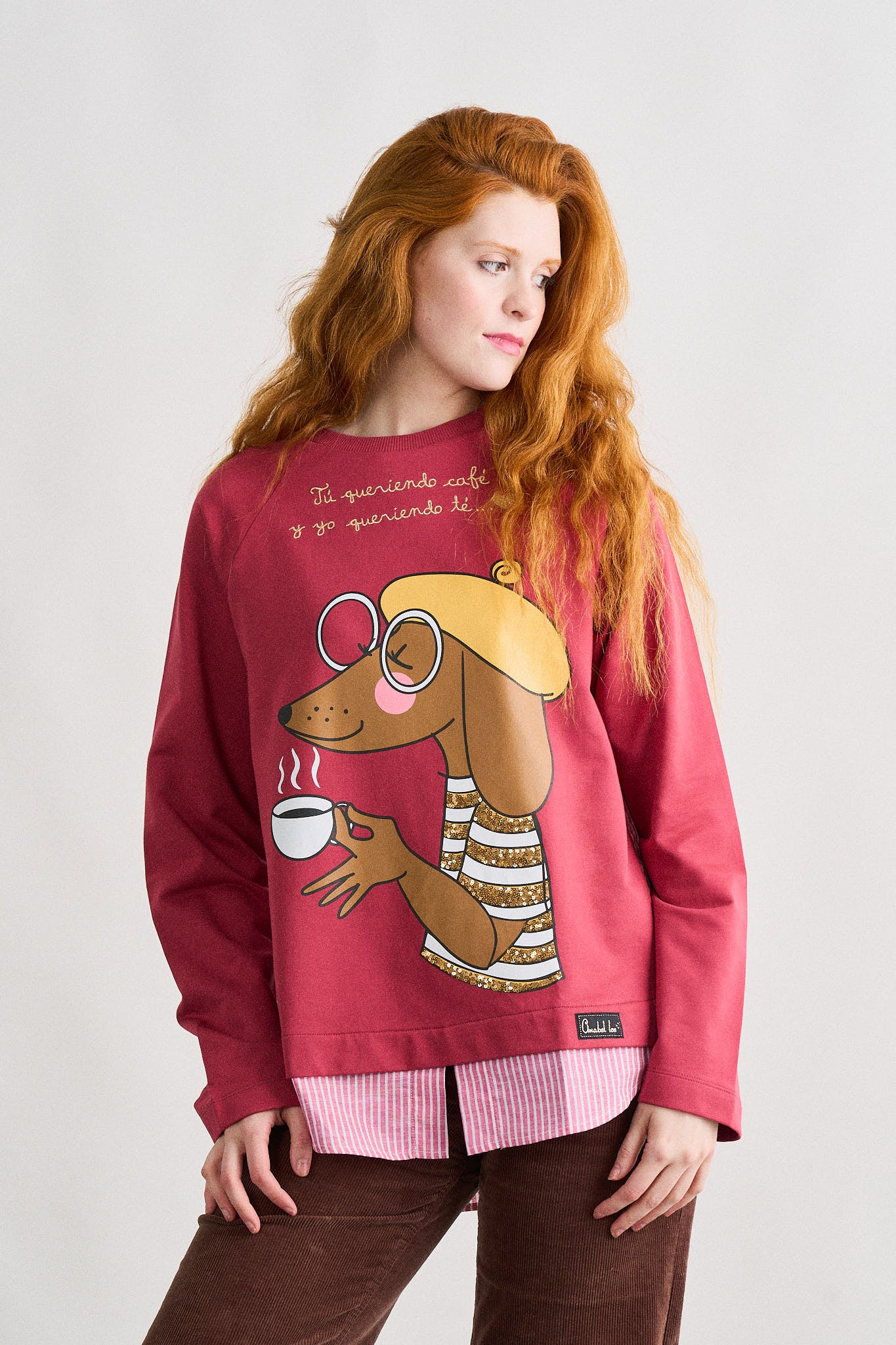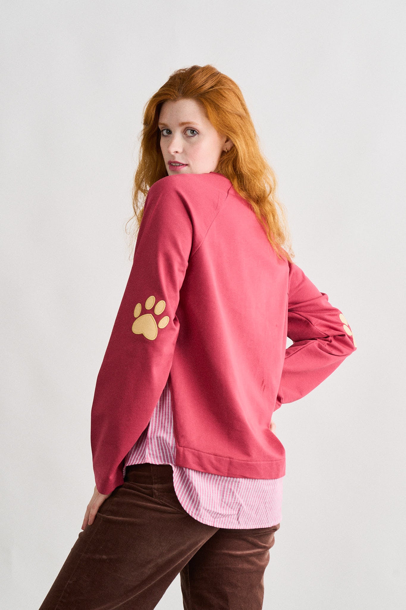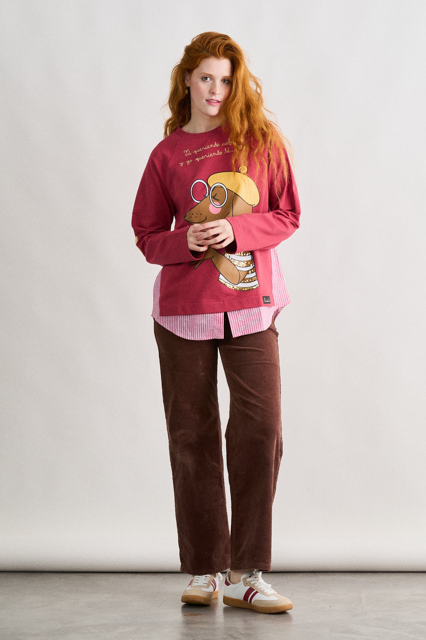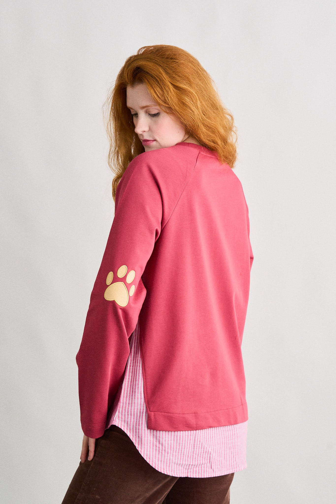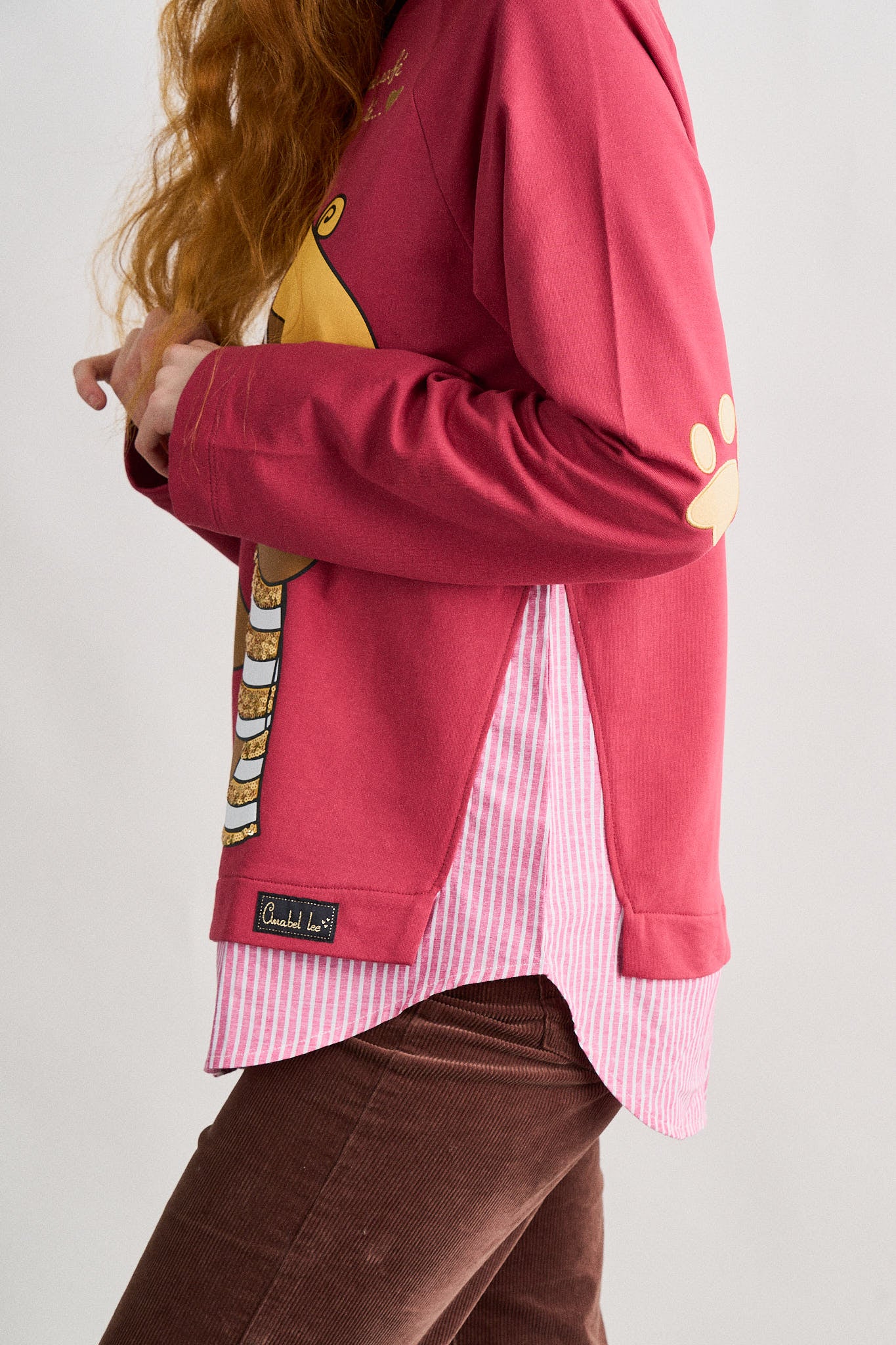 -Bajo de camisa popelín interior adherida en el cuerpo de la sudadera.