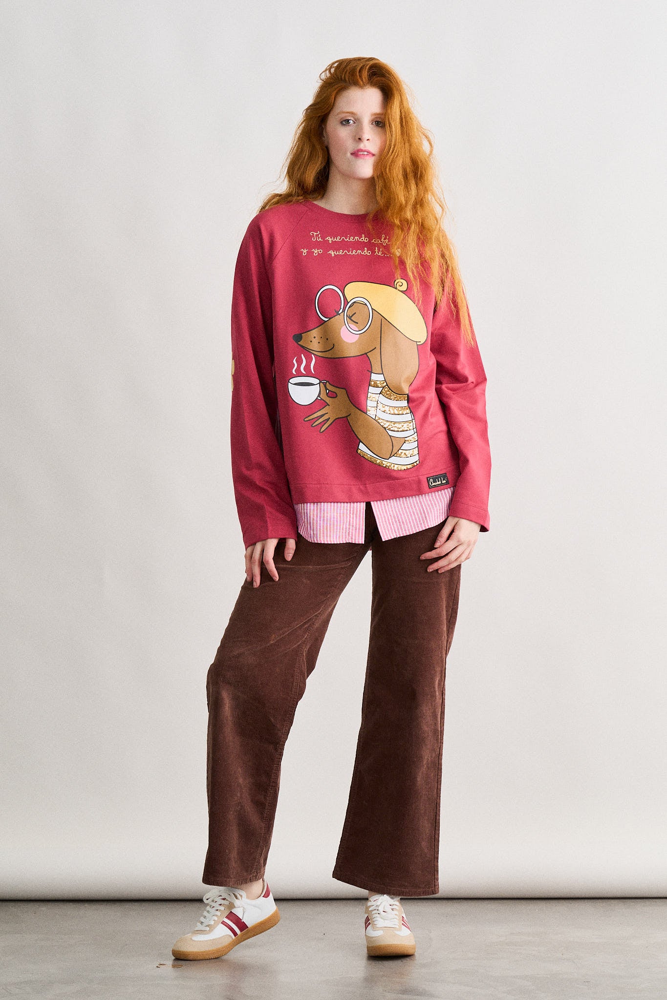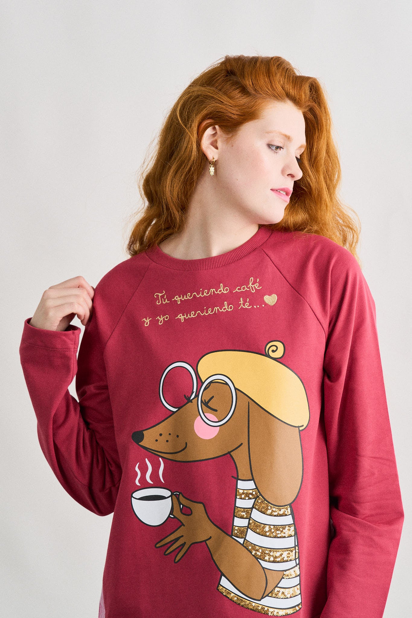 -Sudadera de manga larga, de tipo raglán y cuello redondo.