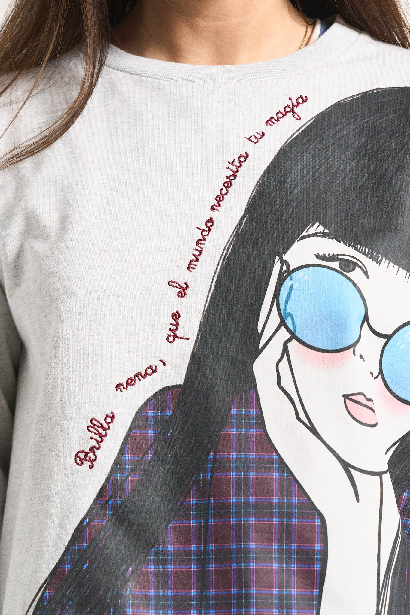-Maxi print delantero y frase bordada.