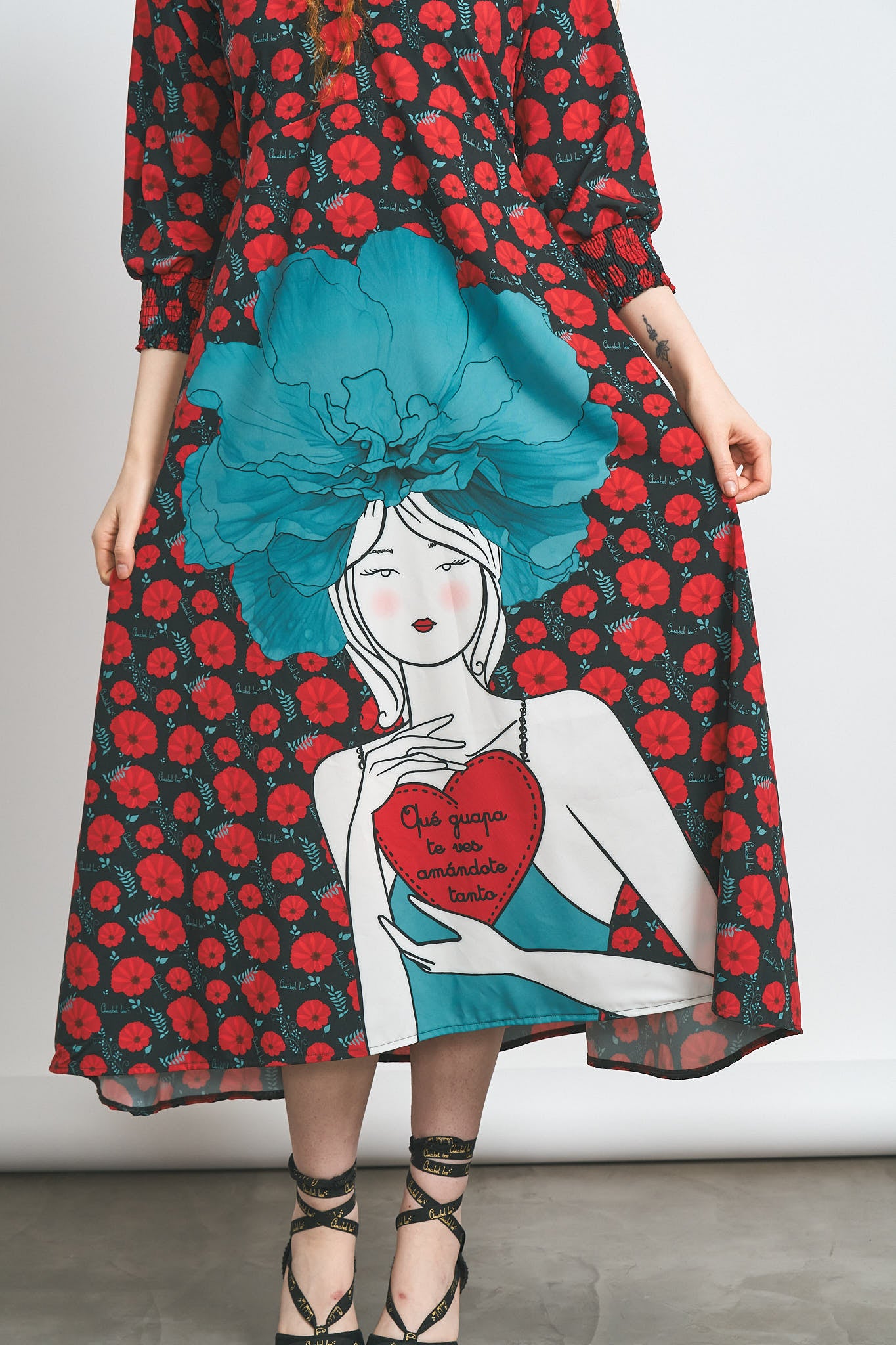 -Estampado allover de flores y logo Anabel Lee.